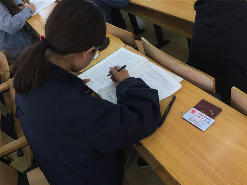 在各级领导和基础教学部的精心指导全力以赴工作下,本次竞赛得以顺利组织。本次竞赛参与面广,其中B类(英语专业组)31 人,C类(本科组)238 人,D类(专科组)82人。本次比赛共设5个考场,历时两个小时,全程监控录像。上午9:00竞赛正式开始,考试期间,考风严谨、秩序井然。学生认真作答,圆满完成了听力、阅读、翻译、写作等测试题目。上午11时考试结束,收卷工作有条不紊,考场内的同学陆续有序离开。