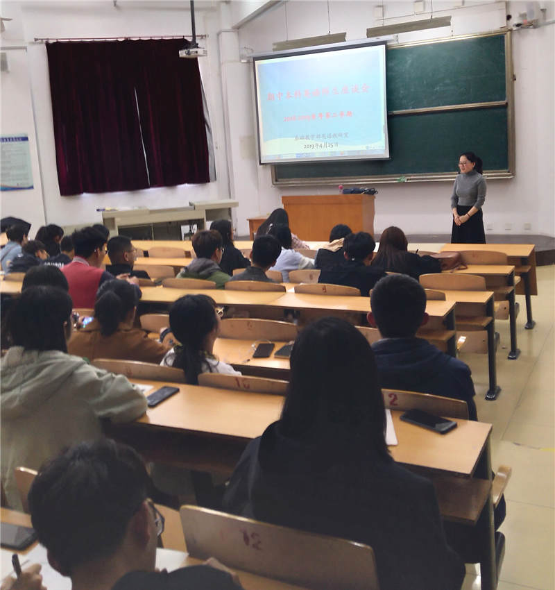 交流会上,备课组长首先向大家介绍了此次座谈会召开的目的及目前大学英语教学现状。接着,各班级学生代表发言。各班级代表分别结合本班实际提出了在学习英语中存在的问题和困惑。就学生的提问内容,在座老师们都认真进行解答并为同学们在如何增加词汇量、提高阅读速度及听力技巧等方面给出中肯建议。在座同学们还就四六级备考相关问题进行了提问,老师们对同学们的问题给予耐心解答,并分享了四六级各题型的备考策略。各分会场秩序井然有序,师生热烈交流,气氛融洽。