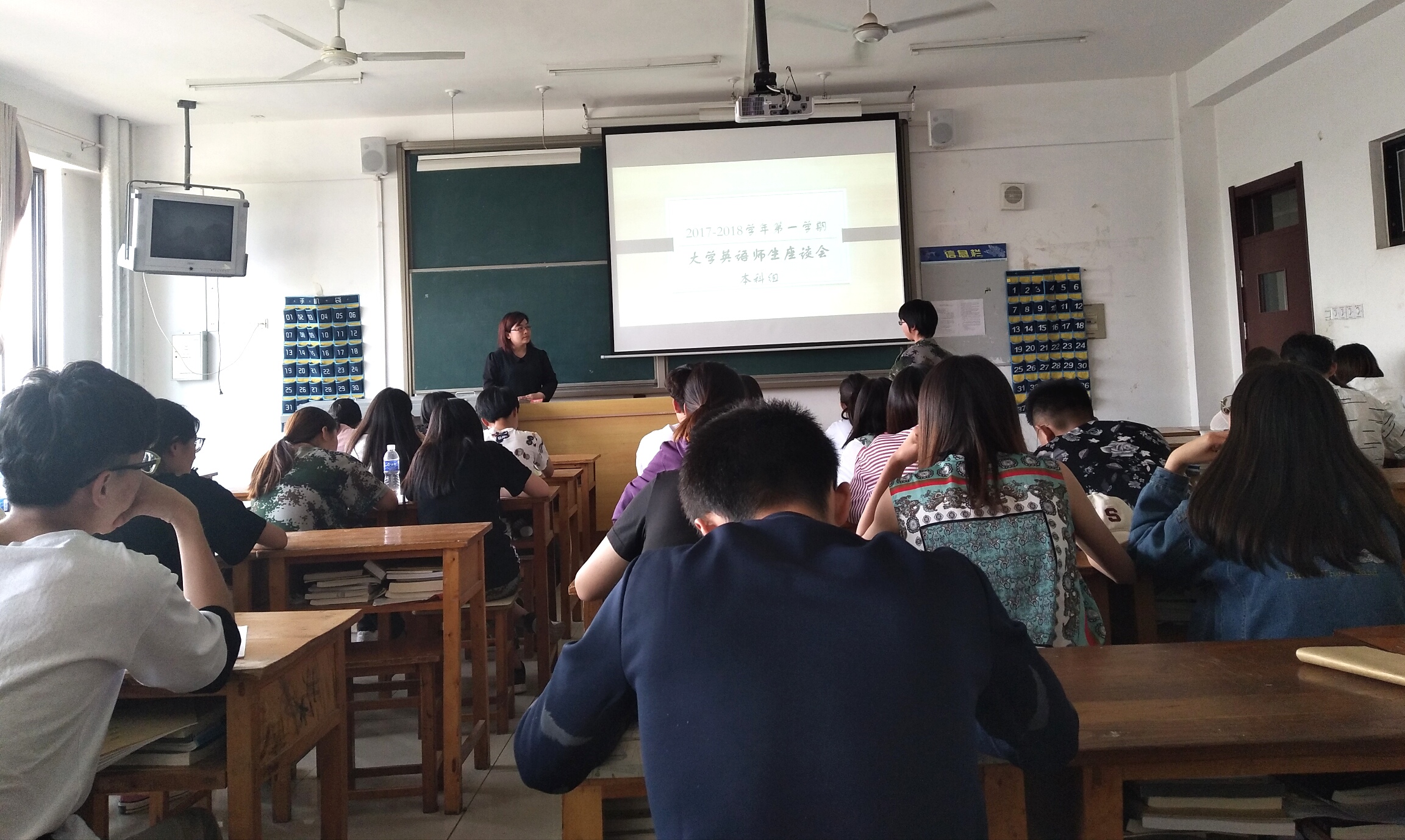 交流会上,各会场主持教师向大家介绍了此次座谈会召开的目的及目前大学英语教学现状,通过师生对话,加强彼此交流沟通。在本次座谈会上,各位同学畅所欲言,结合本班实际将学习及生活中所遇到的困惑与问题向老师汇报。就学生的提问内容,在座老师们都认真进行解答并为同学们在如何攻克语法、提高阅读能力及词汇积累等方面给出中肯建议。在会上,与四六级备考有关的相关话题引起了师生们的一致重视。李主任表示,大学英语四六级是大家必须攻克的难关,虽然会遇到不少的困难,但遇到困难我们自有对策。我部针对这一问题制定了教学与学生层面的双重对策:在教学层面,计划在将四六级辅导在大学英语授课中进行渗透;在学生层面,为学生推荐四六级参考书目及相关真题,使学生提前熟悉考试,形成积极主动的学习风气。