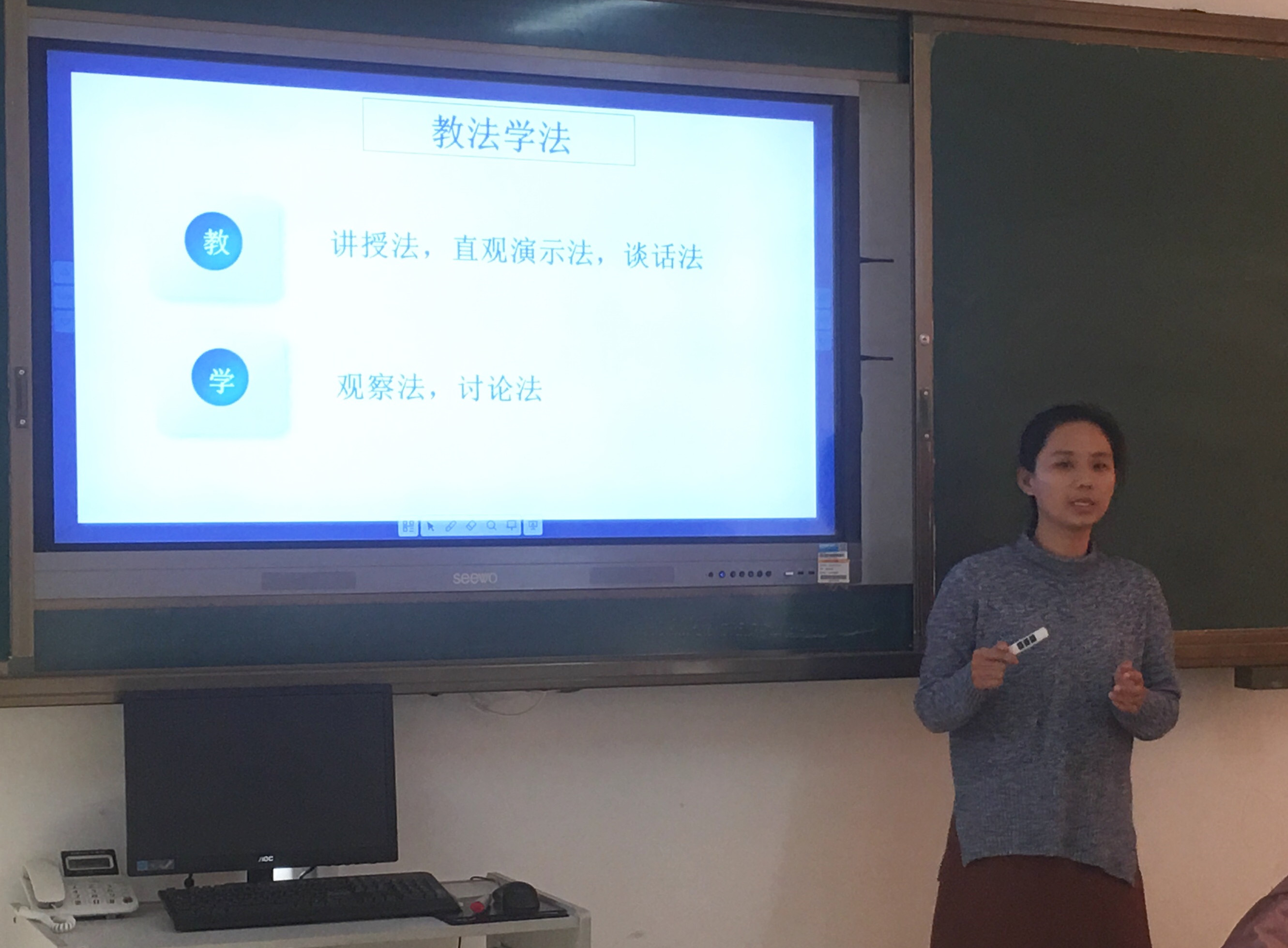 在各位教师的精心准备下,说课比赛拉开帷幕。每位教师都预先准备了多媒体课件,从课程分析到教材分析再到学情分析,从教学三维目标的制定到重难点把握,从教法学法的选择到教学流程的预设,从板书设计到课件使用,整个过程精彩纷呈。