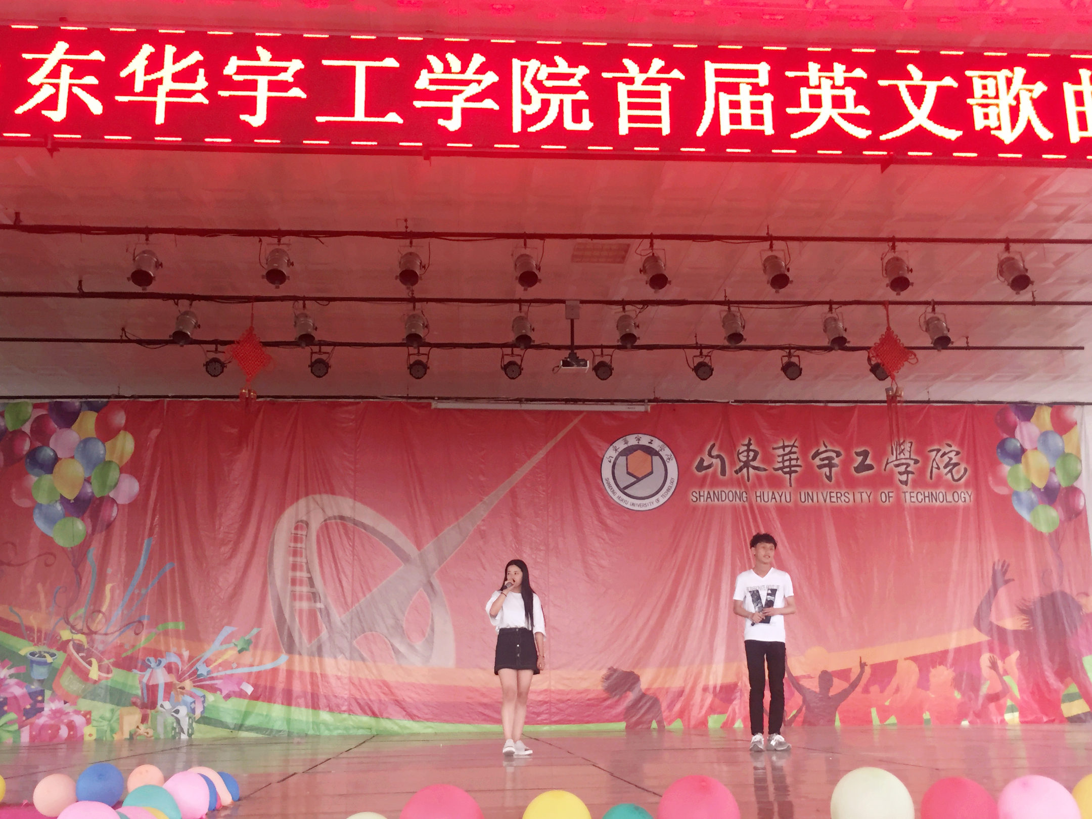 5月11日下午,leyu乐鱼在线官网首届英文歌曲大赛决赛暨颁奖典礼在大学生活动中心隆重举行。本次比赛由基础部主办,流利英语文学社承办。决赛现场特邀请leyu乐鱼在线官网教务处处长贺红岩,学生处处长侯建昌,基础部主任李琦,基础部副主任刘兖峰作为本次大赛的特别指导嘉宾。英语教研室老师作为评委莅临现场。