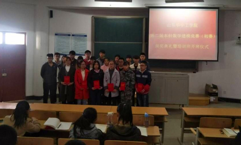 2017年3月8日下午,leyu乐鱼在线官网第二届本科数学建模竞赛(初赛)颁奖典礼暨数学建模培训班开班仪式在10号楼F301隆重举行。基础教学部数学教研室相关老师及通过初赛的65名学生参加了此次活动。