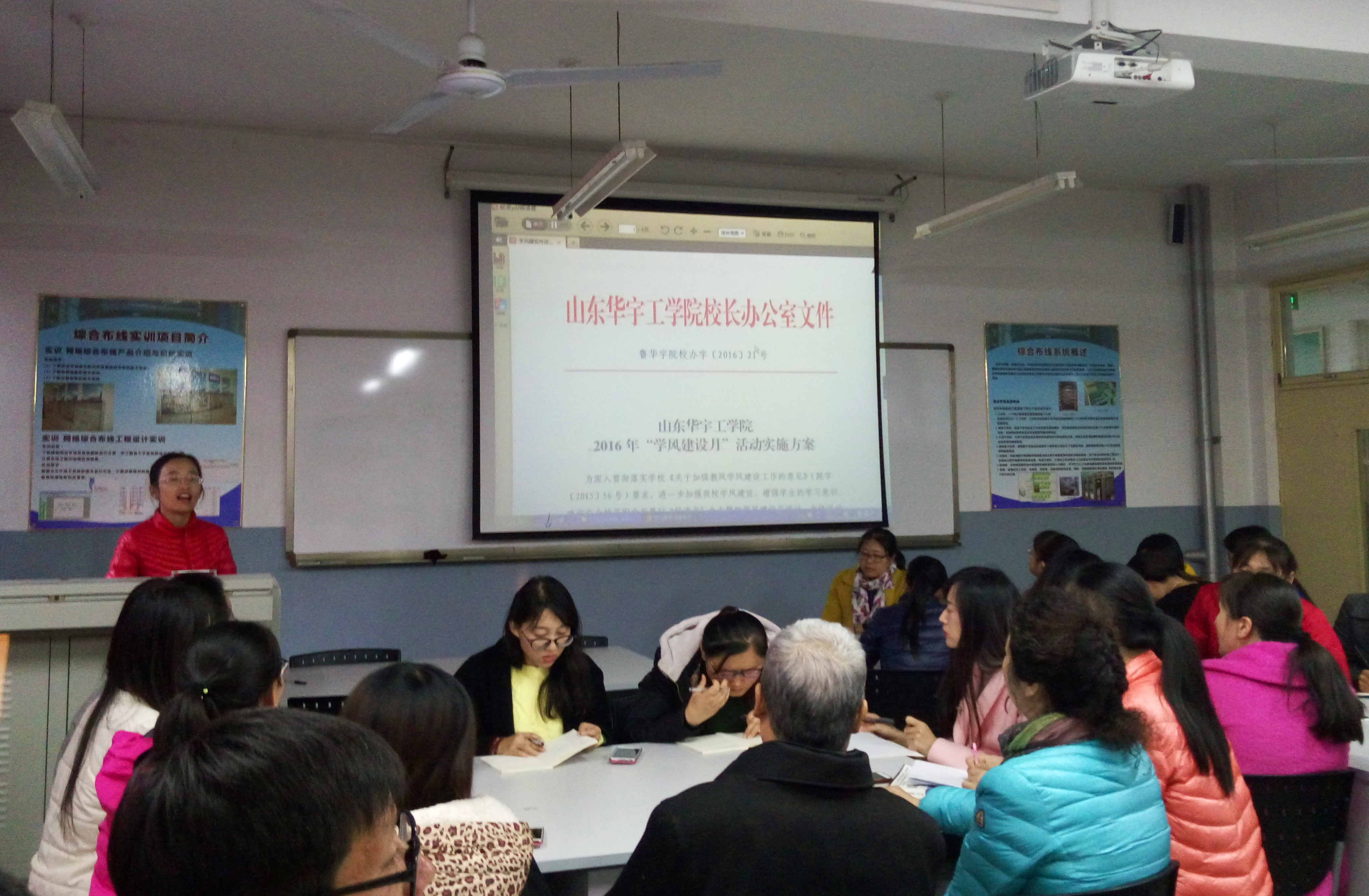 会上,首先,李主任传达了校长办公会纪要的精神。重点强调了“常规工作运行好,自选工作创特色”的内涵,并鼓励我部教师在保质完成教学任务前提下,积极争创工作特色。接着,李主任分别从教学常规、教学模式、授课进度、教案检查、听评课、晚自习辅导、教育思想大讨论、科研工作、学生竞赛等方面作了强调,此外还特别强调了教职工的考勤检查及安全教学的问题。随后,李主任宣贯了《山东华宇工学院2016“学风建设月”活动实施方案》并对我部相关工作进行了部署,成立专门领导小组,对相关活动明确要求,保证活动的形式多样、内容充实且具有实效性。鼓励大家积极组织、发现典型、及时总结,要把各项活动开展好、落实好。最后,李主任鼓励大家积极参加即将举行的山东华宇工学院第二届青年教师教学竞赛活动,以达到以赛促教的目的。