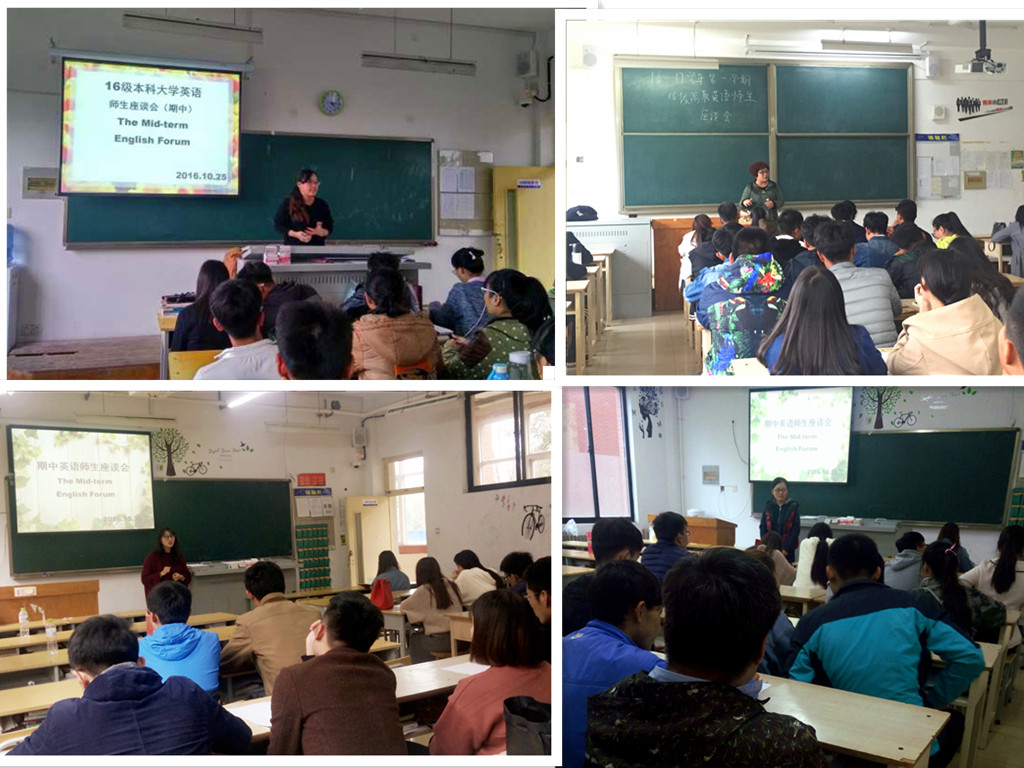 10月25日下午4:00,基础部英语教研室分别在9号楼304等三处,召开了期中师生座谈会。本次座谈会以15级本科、16级本科和16级高职为单位组织进行,各层次相关教师及各班级学生代表参加了此次座谈会。