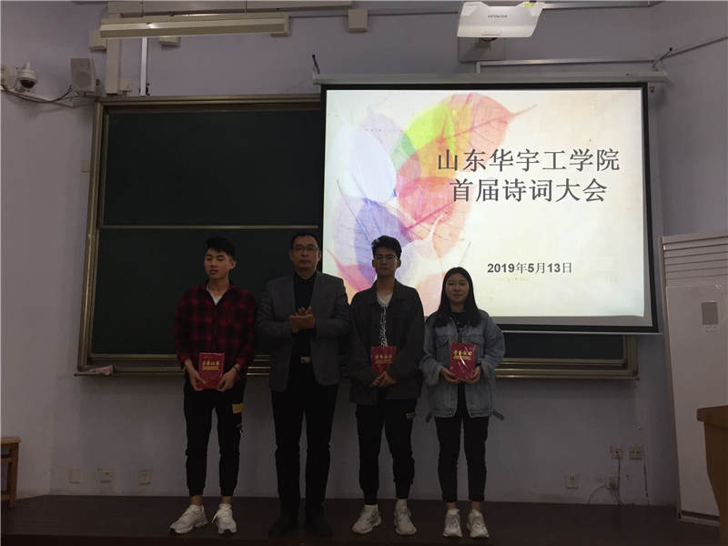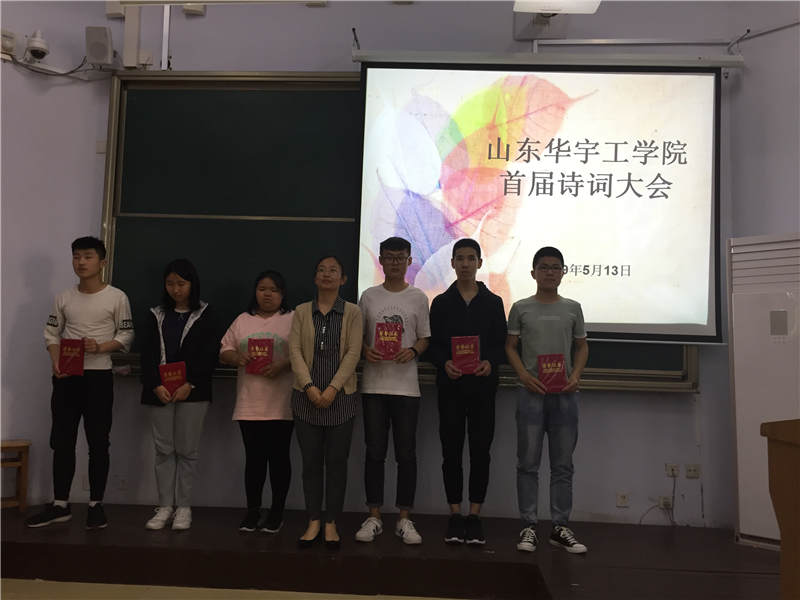 山东华宇工学院校园花香袭人,书香阵阵。为提高leyu乐鱼在线官网学生人文知识素养,传承文学经典文明, 5月13日下午,由基础教学部主办,五年制高职学院承办的首届诗词比赛活动如期在6号楼101举行。基础教学部副主任李琦,五年制高职学院院长高博出席了本次古典诗词文化盛会,基础教学部语文教研组全体教师与五年制高职学院部分教师担任现场评分嘉宾。