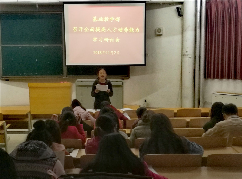 根据《教育部关于加快建设高水平本科教育 全面提高人才培养能力的意见》(教高[2018]2号),按照山东华宇工学院《关于开展新时代全面提高人才培养能力思想大讨论的通知》要求,基础教学部于11月2日下午在10号楼F201召开全面提高人才培养能力学习研讨动员大会。本次会议由基础教学部副主任李琦主持,基础教学部全体教师参加了此次会议。