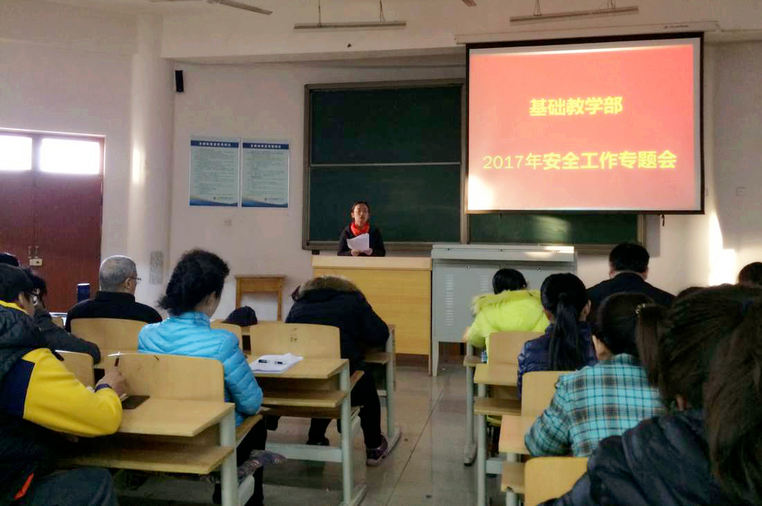 为认真做好学校安全管理工作,切实将安全工作落实到位,3月9日下午,基础教学部2017安全工作专题会在10号F301召开,基础教学部全体教职工参加了会议。会议由基础教学部副主任李琦主持。