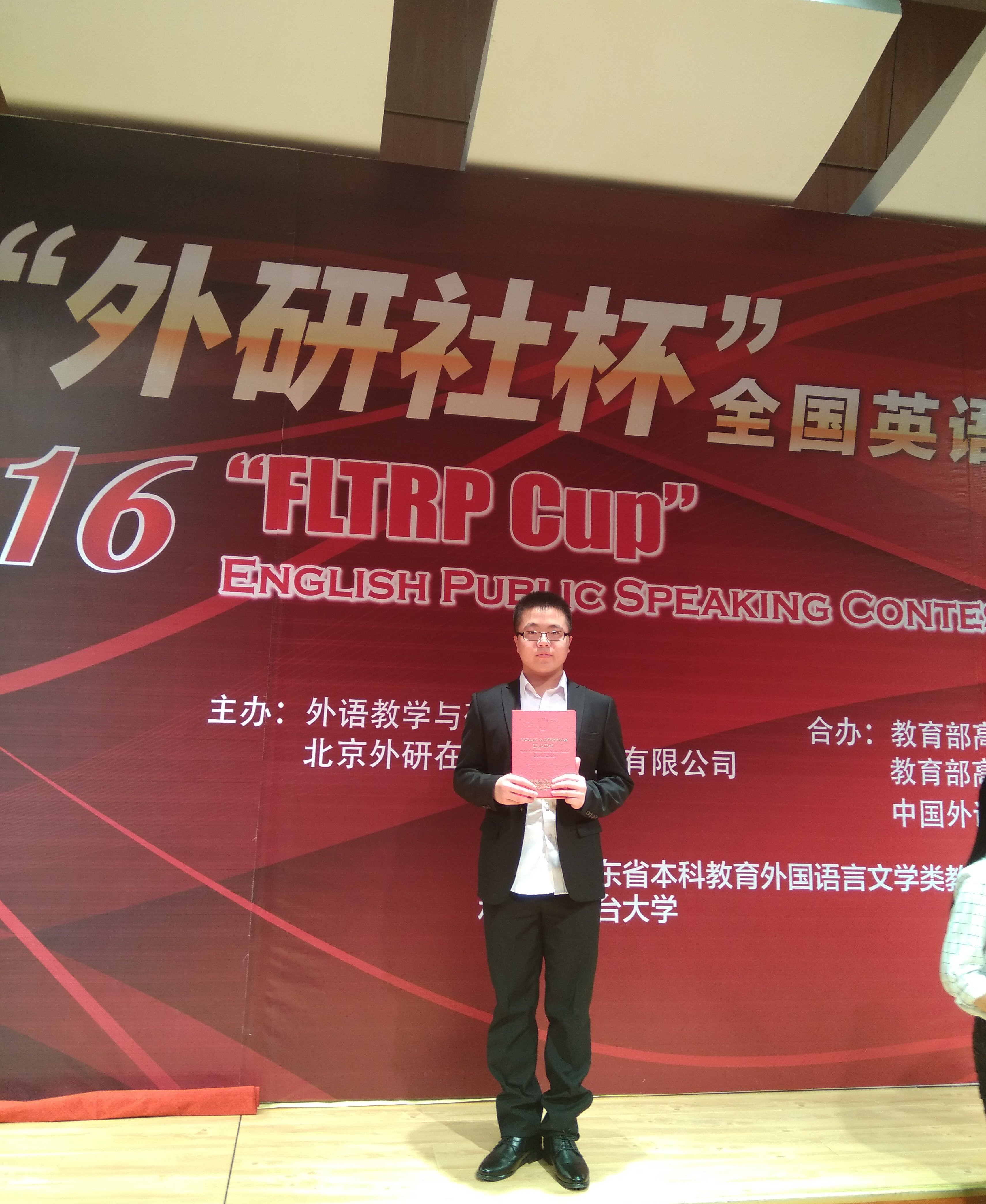10月30日,2016“外研社杯”全国英语演讲大赛山东省复赛在烟台大学落下帷幕。这是leyu乐鱼在线官网本科学生首次参加此次比赛,leyu乐鱼在线官网老师王亚楠指导的学生王兴龙喜获大赛三等奖。