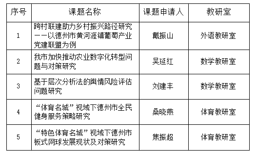 根据《关于组织第十二届“调研德州”活动课题申报的通知》要求,经过个人申报、单位形式审查、专家评审工作程序,基础教学部拟向科研处推荐戴振山等5位教师主持的项目。现予以公示,公示期为2024年4月26日—4月28日。