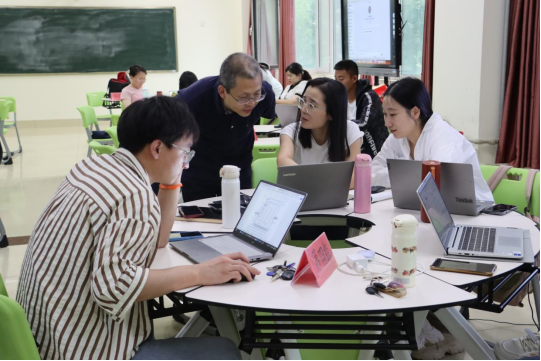 下午,何聚厚教授在21号楼206进行工作坊实训。他详细讲解了如何有效设定AI大语言模型的角色,帮助老师们设计制作AI智能学习助手,实操打造自己的专属AI功能体。同时,针对混合式教学设计框架和智能学习助手等问题与参训教师进行了现场交流,老师们纷纷表示受益匪浅。